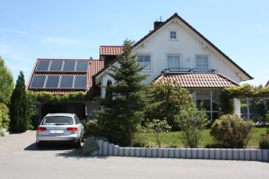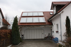 Zusätzlich 8 Solarkollektoren (mit Heizungsunterstützung) auf der Westseite.